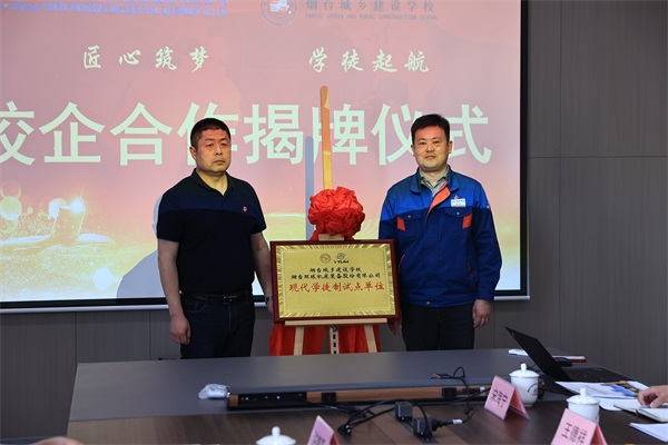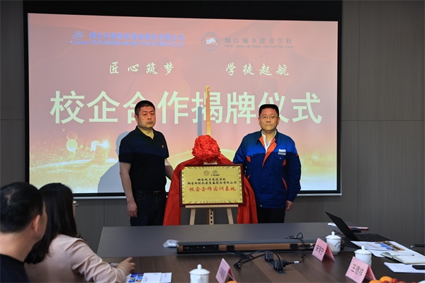 為進一步深化(huà)校企合作,實施人才強(qiáng)企戰略,實現校企合作共(gòng)贏、共謀發展(zhǎn)的美好願景。2023年5月12日,公司與煙台城鄉建設學校舉行校企合作揭牌儀式,在公司三樓第一會議室舉行。公司黨(dǎng)委書記、常務副總經理(lǐ)崔文剛,工會主席陳瑋,企業管理中心(xīn)副主任王德祥,技師工作(zuò)站站長林浩,校方教學分管領導張昌勇(yǒng),國信部主任馮濤等(děng)一行5人,近年對我司(sī)人才招(zhāo)引工作給予大力支持的市直機關工委副書記蘇小峪、市委財經辦秘書科科長王衍應邀出席本次揭牌儀式。