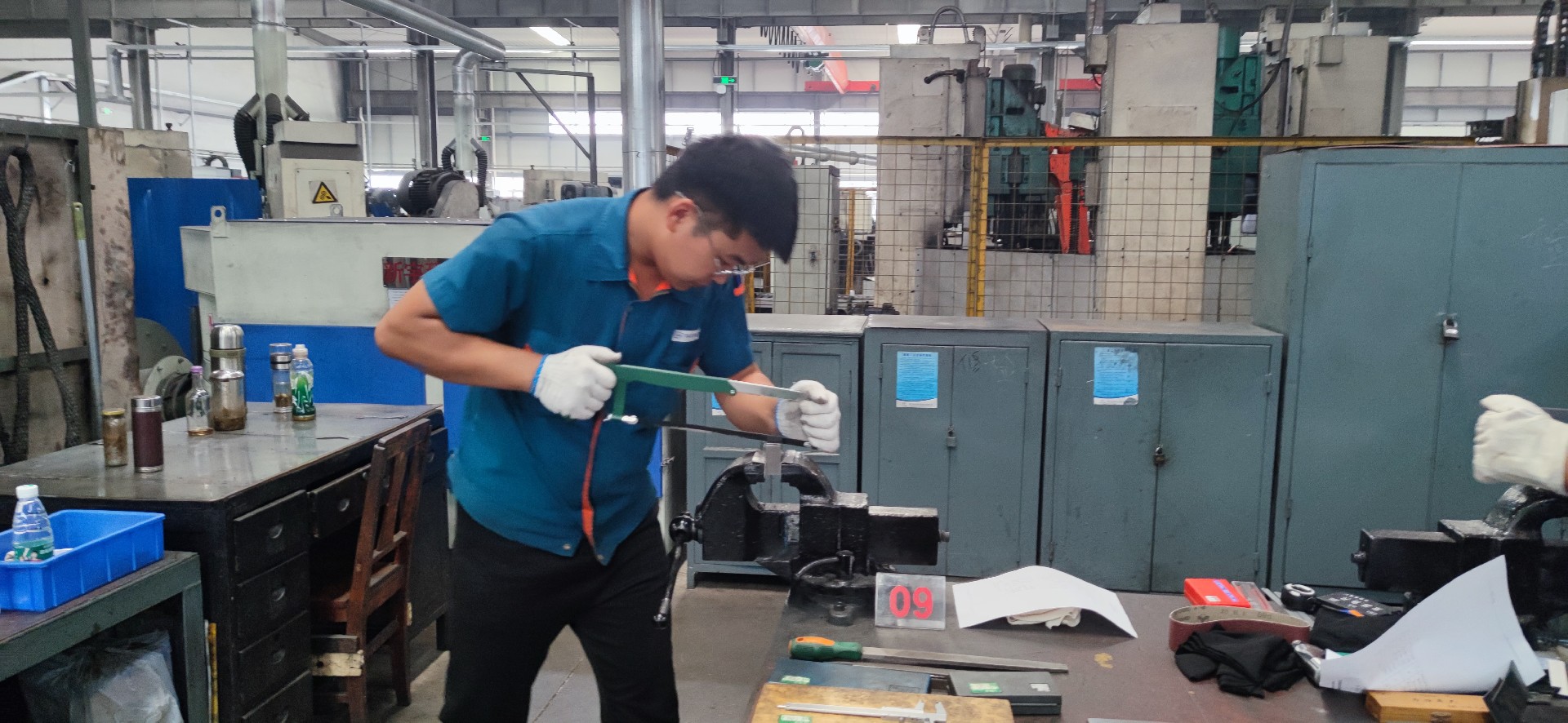 決戰於毫厘之(zhī)間,鉗工在企業(yè)裏稱(chēng)為(wéi)萬(wàn)能工,一位(wèi)優秀的(de)鉗工必須掌握應有的基本(běn)技能。本次競賽試題存在(zài)難度(dù),成績並不理想,跟目前數(shù)控(kòng)化嚴重有一定關係,也跟基本功缺少重視有關。我(wǒ)們(men)必須找到(dào)差距,克服困難,保(bǎo)留傳統(tǒng),勤練基本功。後續公司將借尊師愛(ài)徒傳技學藝”活動月的時機,安排傳技(jì)學藝技術講座,勤鑽研,練本領,交流(liú)經驗,共同提高。