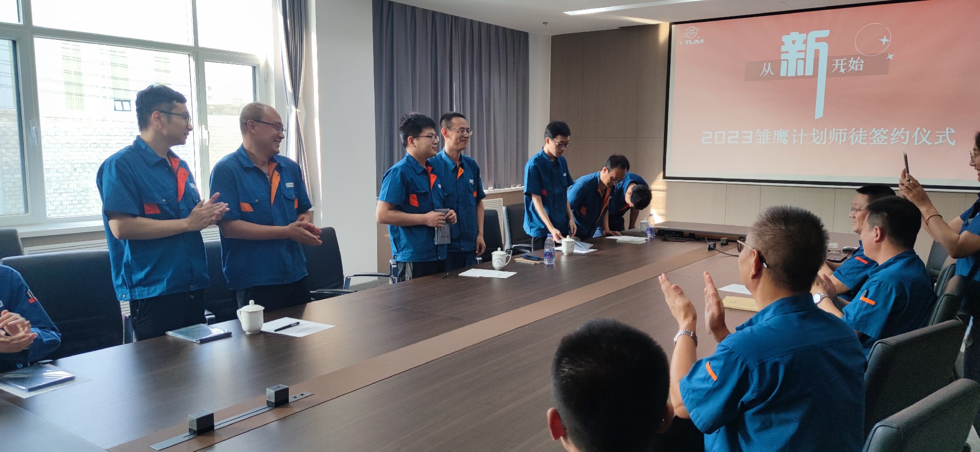 入職培訓後,新入職員工和導師(shī)們在公司領導和各單位技術部門負責(zé)人的見證下舉行了(le)隆重的(de)師徒結對簽約儀式,師帶徒模式是我公司優秀的傳統,今年首次拓展到技術人才隊伍的培(péi)養。徒(tú)弟敬一杯師傅茶,象征(zhēng)著滿滿的尊重與濃濃的感情。師傅送徒弟一(yī)個本子,希望徒弟們能夠用心書寫自(zì)己(jǐ)職業生涯的第(dì)一篇文章。