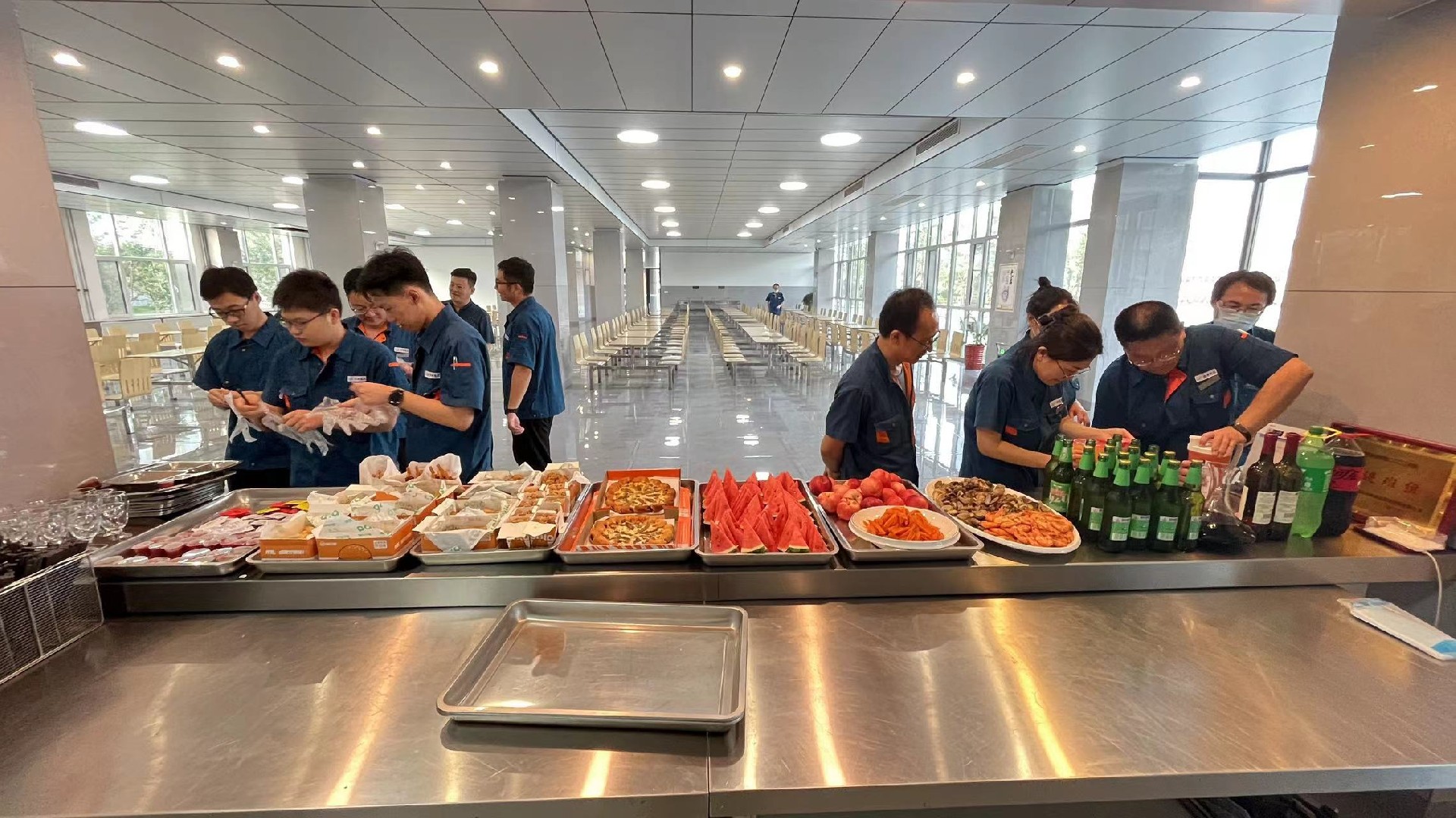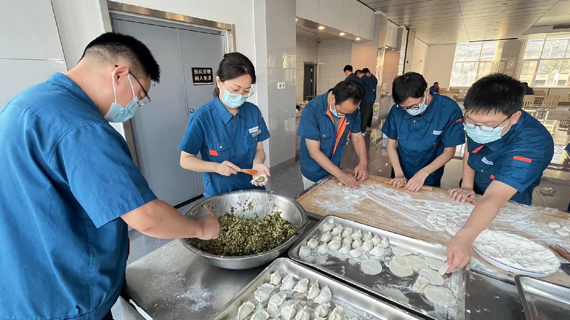 晚上,企業管(guǎn)理中心為導師及新員工們準備了豐盛的歡迎冷餐會,按照膠東(dōng)的習(xí)俗,每逢(féng)大事吃團圓餃子,大家一起和麵,一起拌餡(xiàn),一起動手包水餃。師傅們紛紛對徒弟表示:“吃了水餃,咱們就是一家人了,好好(hǎo)幹(gàn)。”師傅徒弟和公司領導(dǎo)相對而坐,開懷(huái)暢(chàng)飲,暢所(suǒ)欲言,自己包的餃子格外的香。