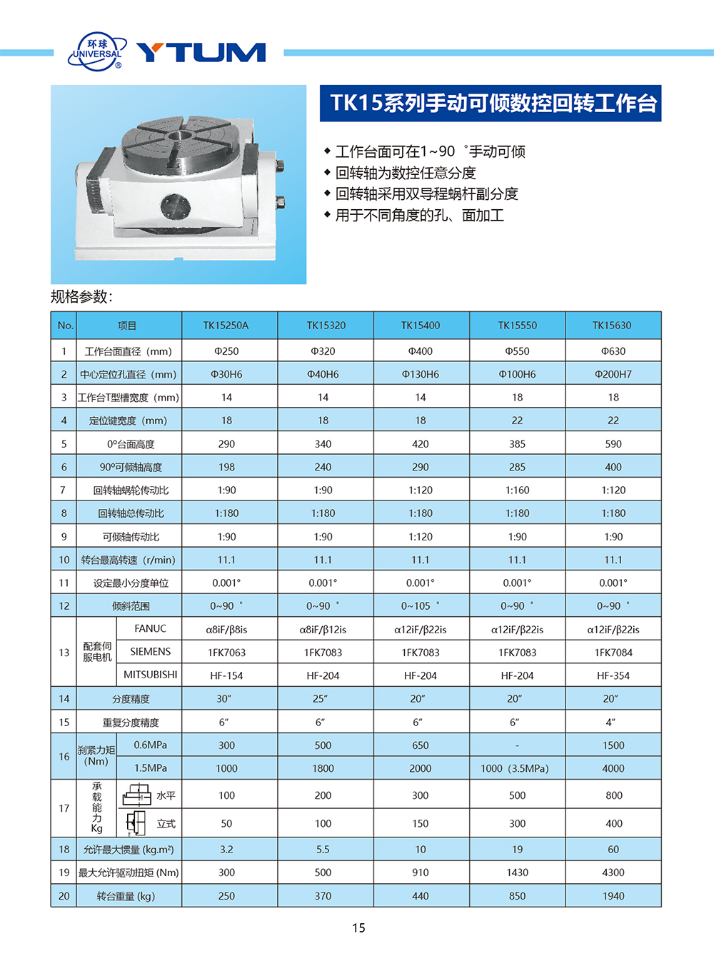 TK15係列手(shǒu)動可傾數控回轉工作台
